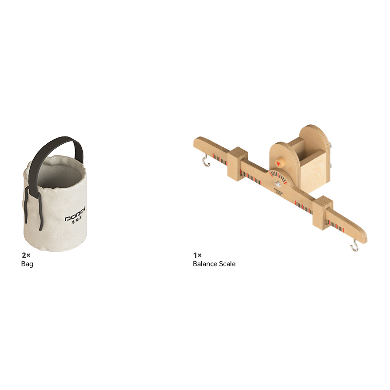 באמצעות מאזני עץ איכותיים ושקיות תלייה, הילדים יכולים למלא, לרוקן, להשוות ולבחון כיצד שינוי במשקל משפיע על האיזון – חוויה לימודית דרך משחק פעיל.