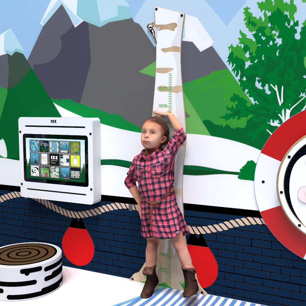 לוח מדידה מקסים בעיצוב גזע עץ לבנה (Birch), המזמין ילדים לבדוק את גובהם בדרך מהנה ואינטראקטיבית.