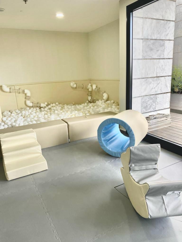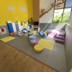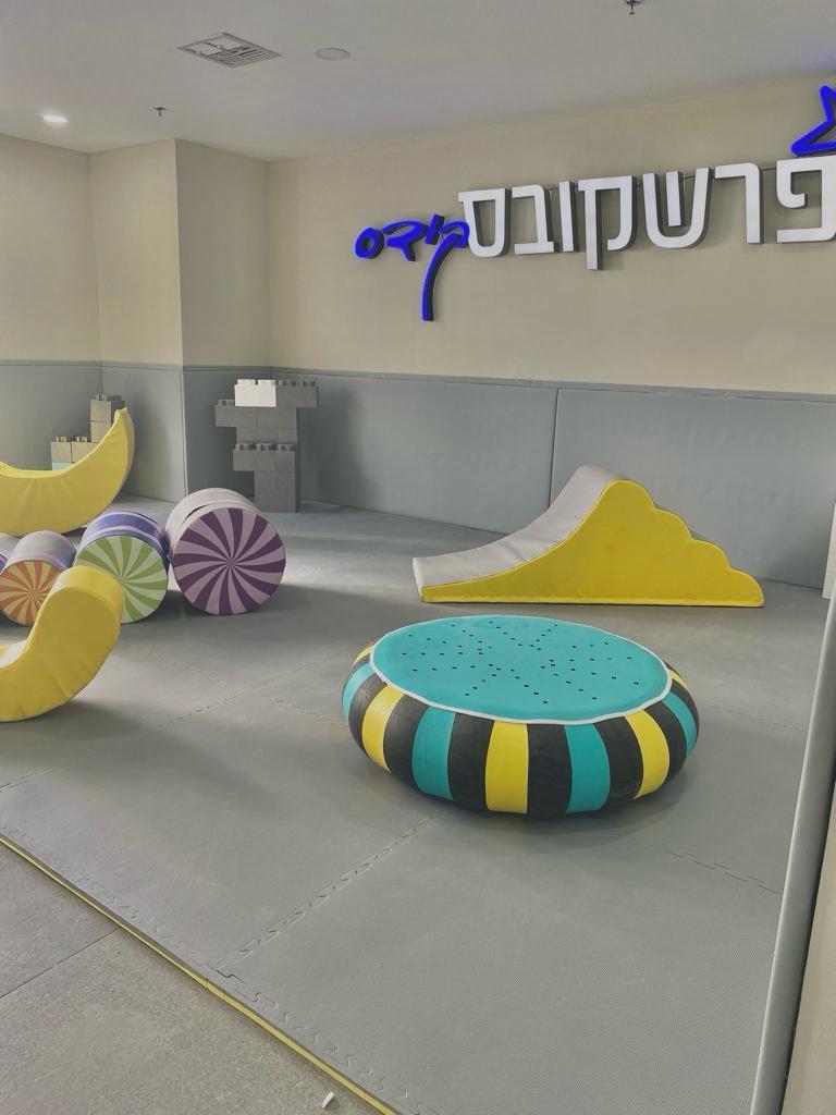 המרחב פתוח, מאוורר ומאפשר לילדים לנוע בחופשיות בין אלמנטים רכים – לנדנד, לטפס, להתגלגל ולדמיין.
