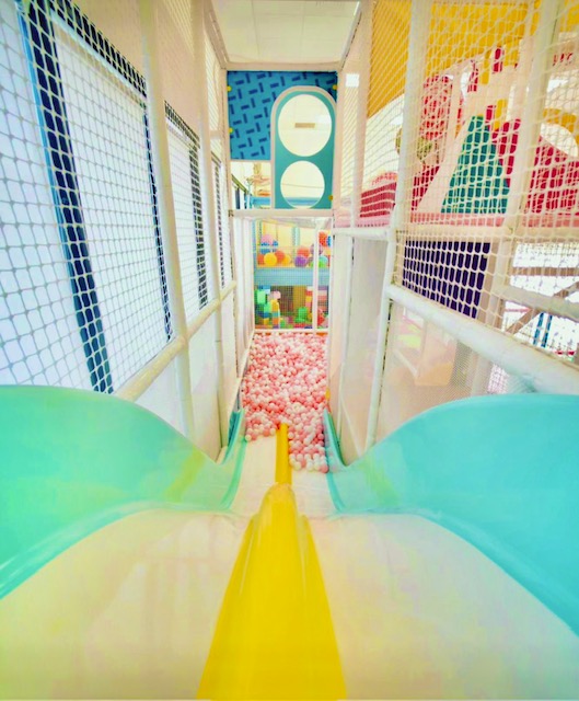 משחקייה דו קומתית הכוללת מתקן רב מרחב עם מגלשות